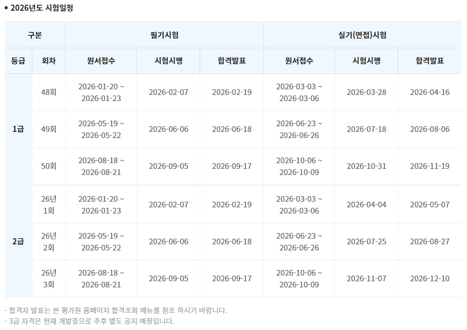 위 내용은 원서접수 > 시험일정 페이지에서도 확인 가능합니다.